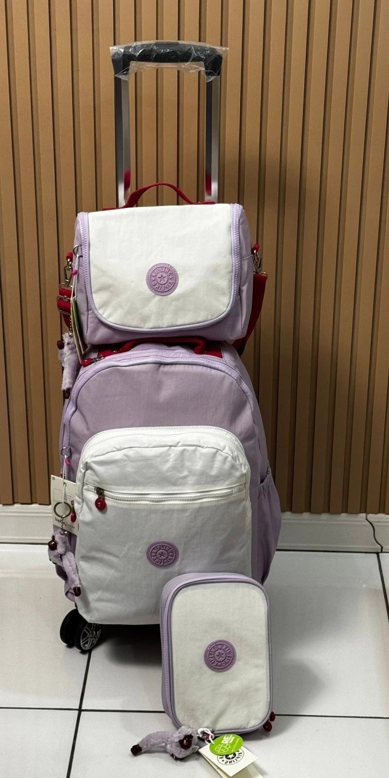 Este kit completo inclui mochilete com rodinhas, bolsa térmica e estojo, tudo em material premium e acabamento de alta qualidade.