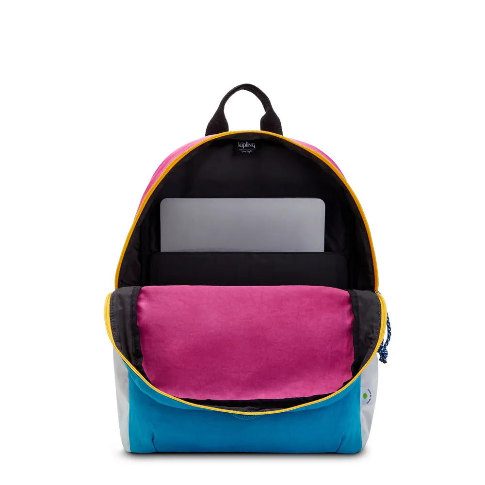 Espalhe um pouco de alegria com esta mochila de upcycle vibrante, divertida e slim. A equipe de design da Kipling levou tecidos não utilizados para criar algo novo; a Coleção K.Limited. Cada mochila SONNIE foi projetada combinando cores e materiais para melhor aproveitar o estoque não utilizado, e de outra forma disponível. O estilo fino e confortável apresenta um compartimento protetor para laptop de 15", uma alça de transporte superior e um bolso frontal com fecho de segurança. Leve esta mochila maravilhosa de coleção limitada antes que ela desapareça. *Este produto faz parte da ação 'Semana de Imperdíveis Kipling', ativa por tempo limitado, e sua troca só pode ser realizada online através do site oficial.